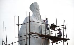 近日,厦蓉高速公路汝城水口段收费站入口处,随着一阵清脆的鞭炮声,理学鼻祖周敦颐巨型石雕像在此落成。据业内人士查证,该雕像是目前全国所有周敦颐雕像中体量最大、高度最高的一座。