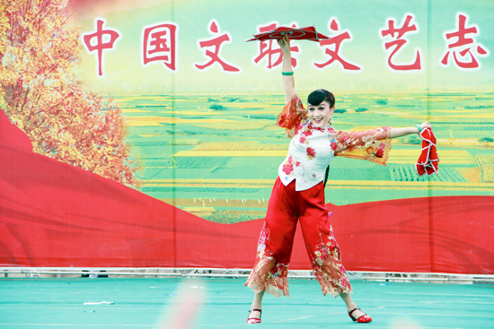 王小燕表演舞蹈《大姑娘美》。本报记者 董大汗 摄