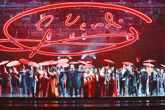 威尔第200周年诞辰是今年全球音乐界的一大盛事。8月22日、23日,国家大剧院歌剧院举行专场纪念音乐会。音乐会由吕嘉指挥,“中国三高”戴玉强、莫华伦、魏松以及和慧、孙秀苇等13位著名歌唱家加盟演出,带来《弄臣》《游吟诗人》等十部威尔第经典歌剧中的24首唱段,堪称威尔第歌剧“折子戏”,浓缩了威尔第一生最精华的歌剧创作。图为演出现场。 王小京 摄