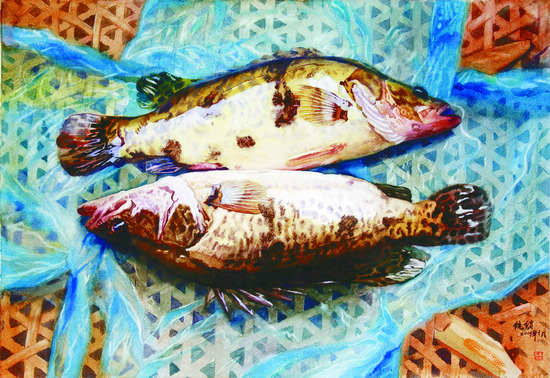 白统绪的《鳜鱼》(水彩)作品在湖北美术馆展出