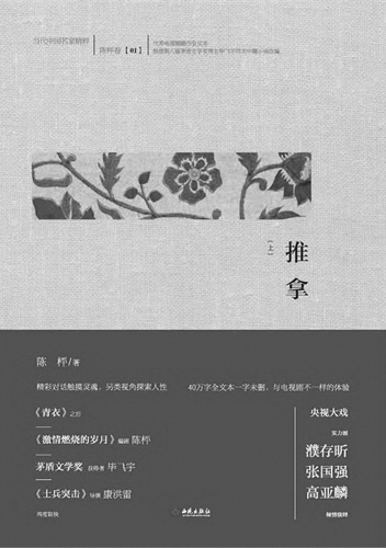 陈枰即是电视剧《推拿》的编剧。今年7月,西苑出版社出版了她的电视剧剧本《推拿》,全书分上下两册,四十余万字,其电子版图书也在各个电子图书平台陆续上线。