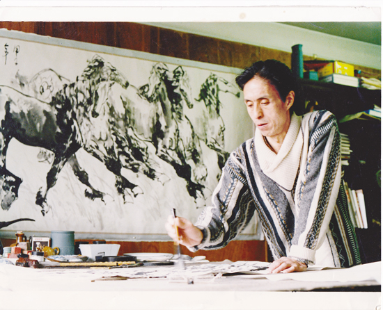 他的脾气又“上来了”,他画低头喝水的马,画马屁股,尽管超越公众视觉的惯性,尽管不为市场所喜。“要说我和徐先生的不同,我必须想办法开拓,要不愧为他最后一个弟子;第二个,时代不同,认识不同,我的马的形态自然不同。”