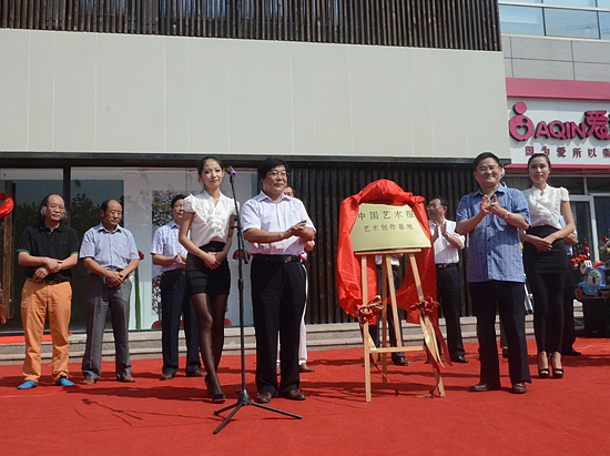 中国艺术报社社长向云驹,山东省日照市政协副主席林玉营为中国艺术报日照画院暨艺术创作基地揭牌 黄远 摄