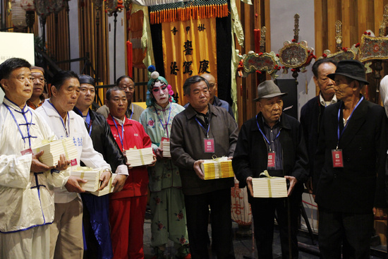 民间保护天津皇会基金管委会还向十道老会捐赠了皇会文化档案丛书 张志勇 摄