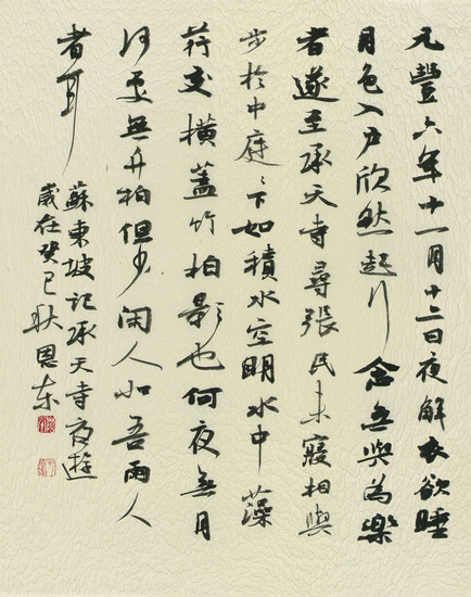 行书斗方 苏轼《记承天寺夜游》 于恩东
