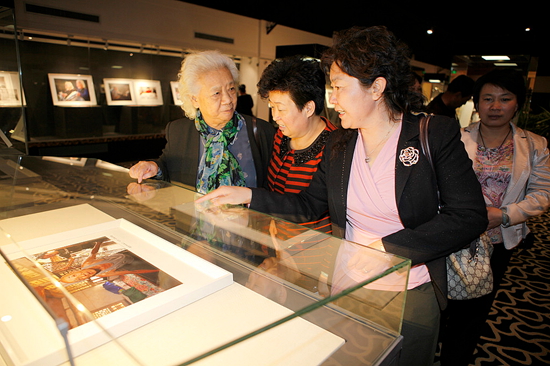 中国世界民族文化交流促进会会长马小玫观看《异彩中华·孝和天下》展览