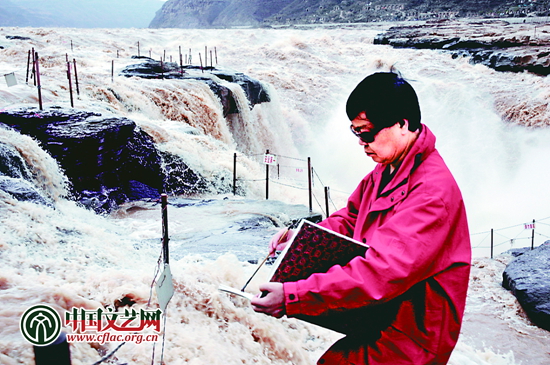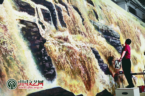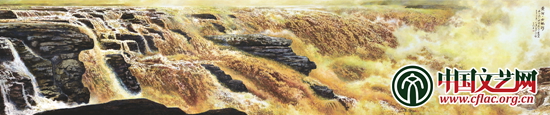李树声(中央美术学院教授):他的画气势和气魄都很大,非常壮观。选择壶口瀑布这一段来表现黄河,显然是经过深思熟虑的,黄河那么长,究竟画什么,选择这个地方我觉得很有代表性,因为黄河本身是中华民族的象征,集中表现了华夏文明的源远流长和瑰丽气象,象征着我们中华民族,画中有种奔腾向前的气势,与我们的时代非常契合,艺术表现非常成功。