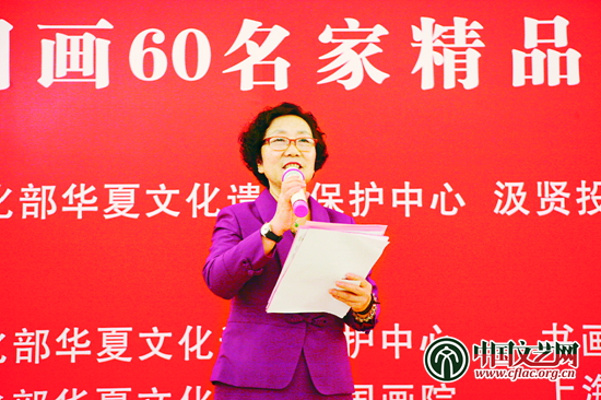文化部华夏文化遗产中国画院副院长陈丽能宣读关于成立上海汲贤分院的批文