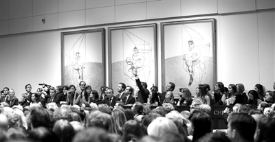 前晚的纽约一夜足以证明西方艺术品市场的火爆。当晚纽约佳士得举行战后当代夜场拍卖,其中培根创作于1969年的《弗洛伊德肖像画习作》(三联画)成为全场焦点。此画是培根为他的朋友兼对手——画家卢西安·弗洛伊德所绘,被认为是培根最伟大的作品之一。该作品估价能拍出8500万美元。