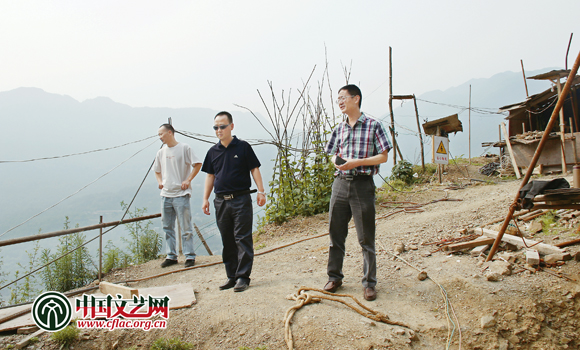 二○一三年五月二十三日(生命中的最后一天),兰辉同志(右一)带病在治新二桥检查安全生产工作 北川县委宣传部供图