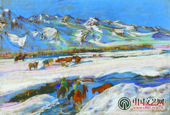 1943年,也决定了常书鸿的艺术之路。他接受敦煌艺术研究所筹委会副主任的任命,于那一年冬天举家迁往敦煌,从此一生致力于敦煌艺术的整理、研究、保护工作。“忆昔年肄业燕京,立冰绘雪之痴,至此可谓极雪国大千之大观,可是要真表现雪景,还要有澄明心境之修养,始能悟其洁;有灵快笔触,始能状其清,一个岭南游子,走马匆匆,所能表达的实在有限。”
