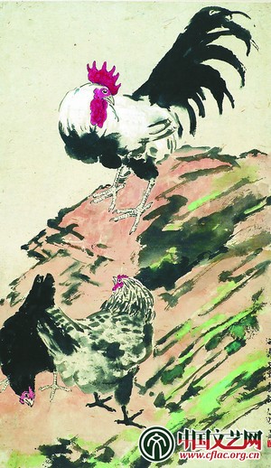 三鸡图轴(纸本设色) 徐悲鸿 中央美术学院美术馆藏