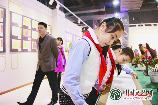 “除了大人们说的陶冶情操以外,我喜欢写书法最重要的原因是它会让我不那么暴躁,尤其是快要和同学吵架的时候,而且还能让我在学习时更容易专注。”四川省成都市少城小学的学生王乙西这样回答记者对为什么喜欢写书法的提问。王乙西还拉着身边的同学李懿扬说,“她的字比我写得好。”12月4日在成都“城事荟”主题文化艺术馆,成都文艺志愿者协会主办、成都市文联文艺志愿服务团硬笔书法分团承办的首届“中国梦·笔尖情”硬笔书法义展上,这两位漂亮的小姑娘和同学们一起寻找着自己的作品,并为能参与这样高规格的展览感到自豪。据主办方介绍,这次义展吸引了上万人投稿,年龄横跨6岁到103岁,每个人都以文艺志愿者的身份加入义展,表达自己对于硬笔书法的不同理解,践行志愿者精神,与观众分享硬笔书法之美。记者在义展现场看到仅参观展览的小学生就多达上百人,他们很认真地看,时不时地还用手机拍下自己喜欢的作品,令人感慨中国书法后继有人。