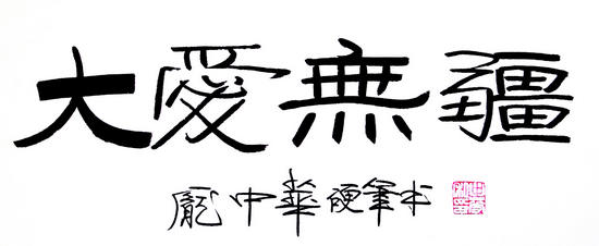著名硬笔书法家庞中华用马克笔书写的隶书作品