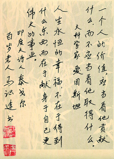 马识途是现代著名作家,也积极参与了硬笔书法创作