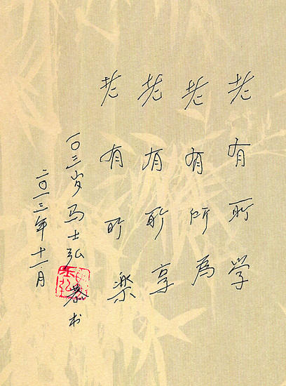 赵安如用竹笔在硬笔书法创作纸上创作的一幅行书作品