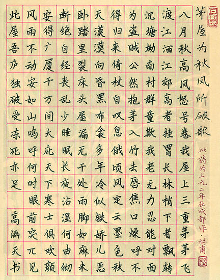 在经过设计的硬笔书法纸张上书写的行书作品,作者李放鸣