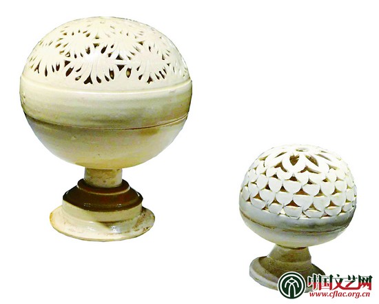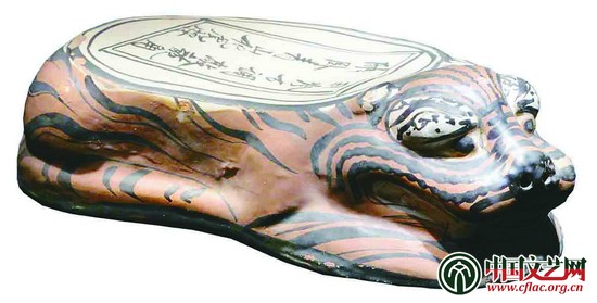山西的陶瓷烧造历史悠久,历代窑址众多。此次特展所展出的130余件(套)文物贯穿宋、金、元、明、清数个朝代,涵盖了从北向南的大同窑、怀仁窑、介休窑、霍州窑、长治窑等众多窑址,重现了12世纪至19世纪山西窑业兴旺的全貌,让人们再次体味到千百年岁月逝去后留下的窑器温度。不同于南方的以柴烧制,山西瓷器大量是以煤烧制,并带有明显的北方风貌,窑工技法精妙,可谓化腐朽为神奇。如此次展品中的一件金代介休窑的白瓷镂空香熏,胎色洁白,通体施玻璃釉,熏盖由金属刀具镂刻成花卉图案,焚香点燃后,香烟会从空隙间飘散萦绕,足见宋金时期人们对香器使用的讲究;又如老虎枕,可谓栩栩如生,匍匐在地,一只只老虎,或张口怒目,或憨态可掬,其中一件赭地黑彩诗文虎枕,枕面上的两句诗:“闲吟古调敲龙角,醉卧青山枕虎腰”,率性之中不乏豪迈大气。