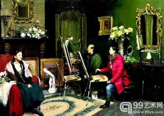 “它们与我的审美追求有一致的地方,它表现出我追求的艺术的传统性和严谨性。”冷军说,《画室》系列要呈现经典油画的构图、光色、绘画感,这与当代艺术不同,“当代艺术大多传递观念,有时和技法无关,而要拥有传统油画表现的情趣,就一定要有技法的承载。”