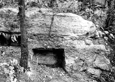 在洛阳龙门石窟西山北段红石沟北崖的中段山腰处有一小型窟龛群,在该窟龛群东部陡直的崖体上,有一瘗穴表面有数道斜向或直向的凿痕,龛前台地窄陡。龛口为横长方形,内部空间为横长方体,高65厘米、宽90厘米、龛底进深70厘米。