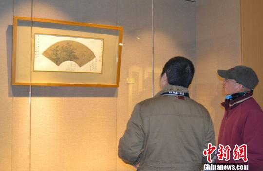 1月15日,两位参观者在欣赏唐寅《读书图》。中新社发 苏路程 摄