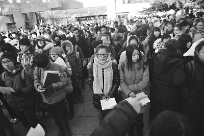 报考北影的考生排队准备进入考场