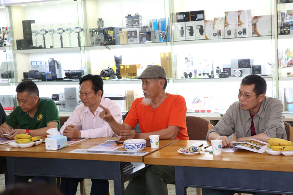 2017年4月22日,中国摄影最高奖“金像奖”获得者,著名摄影家、评论家,中国摄影家协会摄影史研究委员会委员蔡焕松(左三)、东莞市摄影家会主席等与柳州市摄协主席李家树(左二)及柳州摄影家开展“摄影动机与专题影像语言”交流分享活动。韦锦波/摄