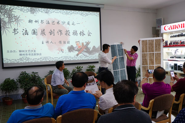2017年7月1日,中国书法家协会会员,青年书法家傅绍尉开展“书法国展创作投稿体会”为主题的交流与分享活动。贝利摄影俱乐部供图