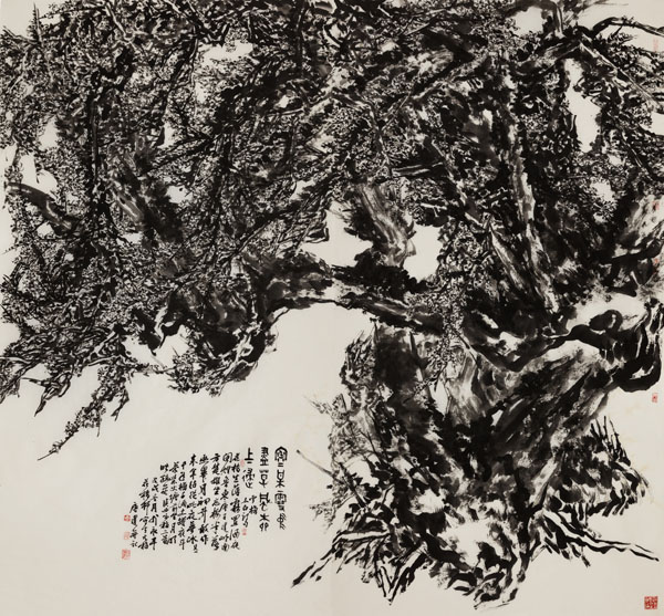 唐建作品:寒梅雪中尽 春风柳上归 190x190cm 纸本水墨 2019年