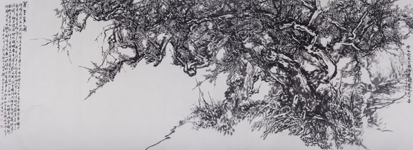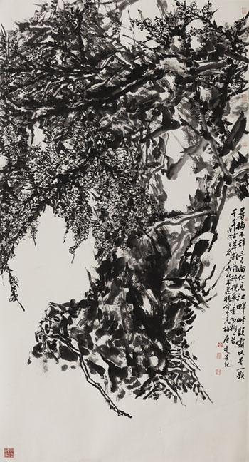 唐建作品:江畔古梅 98cm×198cm 纸本水墨 2019年