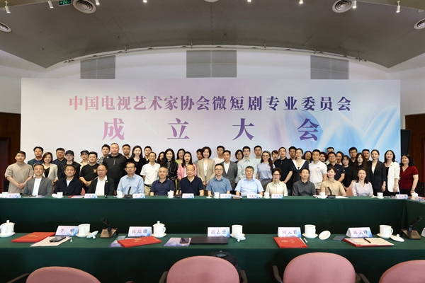 5月18日,中国电视艺术家协会微短剧专业委员会成立大会在北京召开。中国视协分党组书记、驻会副主席、秘书长范宗钗,国家广播电视总局网络视听节目管理司副司长任道远,中央广播电视总台影视剧纪录片中心原主任庄殿君,中国网络视听节目服务协会副会长陶嘉庆,浙江华策影视集团创始人、董事长赵依芳,吉林动画学院董事长、校长郑立国,来自有关部门、传媒集团、广播电视台及影视文化机构等单位的负责同志、艺术家、专家学者以及媒体记者等80余人出席会议。会议由中国视协分党组成员、副秘书长董涛主持。