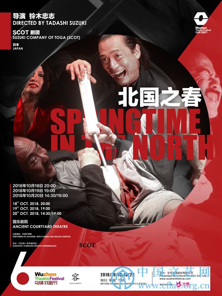日本SCOT剧团由“日本国宝级戏剧大师”铃木忠志创立和带领,剧团由东京市中心迁移至利贺山区,利贺俨然成了国际研究活动和培训表演艺术实践者的中心,同时也成为了表演艺术的档案库。铃木忠志是近年来极受国际剧坛推崇的现象级戏剧导演,这次他为乌镇戏剧节带来了新作《北国之春》,在这部戏里我们能看到铃木忠志有关身体的理论——人的内心和外表不一定是一致的,而这部戏里所表现的形式有了更深刻的发展,描述了人的内心膨胀起来,最终会连外表的现实也抹杀掉。