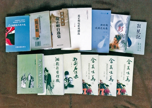 范老对戏剧,特别是湘剧情有独钟。尽管他老五十年代一直做剧团行政工作,却长时间是行政业务一肩挑,即使行政工作再繁忙,他依然挤出时间从事戏剧创作。先后创作了《炊事员风波》、《郭亮带兵抓郭亮》、《郭亮》等大量湘、花、歌剧剧本,为戏剧的繁荣兴盛作出了很大的贡献。六十年代,他毅然放弃了正顺风顺水的仕途,到市戏工室做了一名专业编剧,这在当时一般人眼里是难以理解的,从中也不难看出范老对戏剧的执着和付出。