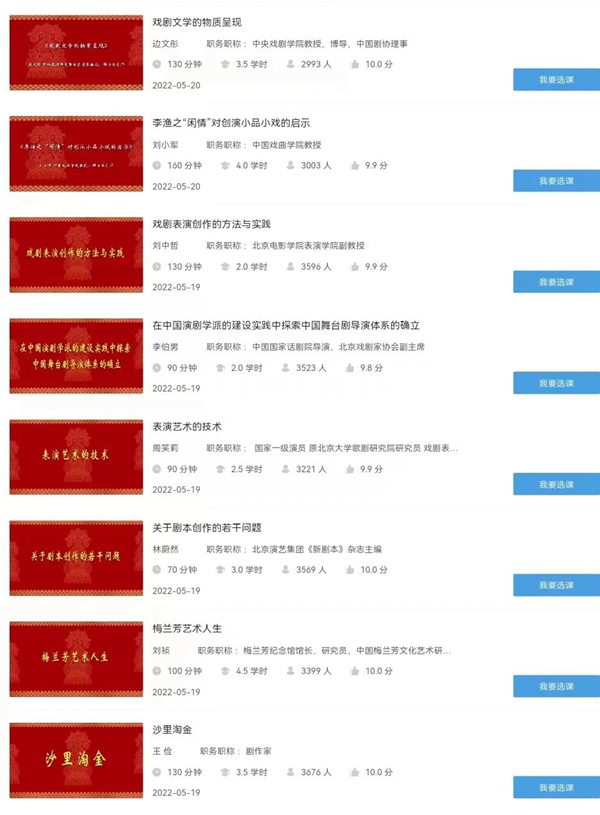 二是专业课程师资雄厚、针对性强,课程以线下讲座视频资料和现场录制视频相结合的方式呈现。原空政电视艺术中心编导室主任、著名剧作家王俭以《沙里淘金》为题,探讨戏剧创作如何练就“淘金”、“锻金”的本领,提出必须锻造艺术的“金”品,才能无愧于舞台。北京演艺集团《新剧本》杂志主编林蔚然在《关于剧本创作的若干问题》讲座中,结合学员普遍关注的问题,以快问快答开场,答疑解惑,并以国家话剧院话剧《人间烟火》等作品举例,对现实题材创作问题等进行深入浅出的讲解。中国戏曲学院导演系教授刘小军结合多年授课经验,通过阐释李渔作品《闲情偶寄》讲授《李渔之“闲情”对戏曲创作的启示》,提示创作者人的状态中应有“闲情”,日常有养,词曲才深,演习才美。中央戏剧学院教授、博导、中国剧协理事边文彤在《戏剧文学的物质呈现》讲座中提出,舞台美术不是仅仅地点的提示,更是剧作精神的呈现,是戏剧思想和主题的生发,阅读文学和表达戏剧文学的内涵是核心。