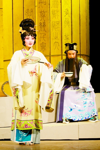 在走向现代审美的过程中,《梦蝶》虽吸收了新元素,但并未抛弃传统——声腔音韵、表演程式规范,还姓“祁”;但它在时代精神滋润下,发挥歌舞化特长,释放戏剧情感,舒展感性形象。从内容、唱腔、念做,到乐器、舞美、灯光,再到服装、化妆、道具,无不优美、精致又意涵深蕴。