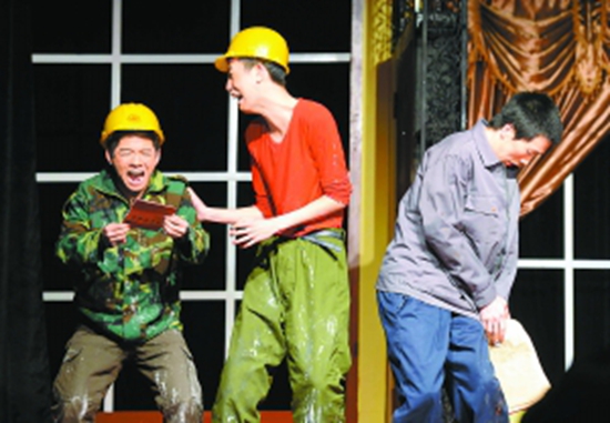 首演于2004年的《阳台》,讲述包工头老穆为民工讨要拖欠工钱,无奈之下上演“跳楼秀”,但是由于过火“表演”,不慎失足掉到了贪官侯处长家的阳台,由此引出一连串滑稽可笑的故事。9年来,该剧已演出二百多场,收入数千万元。