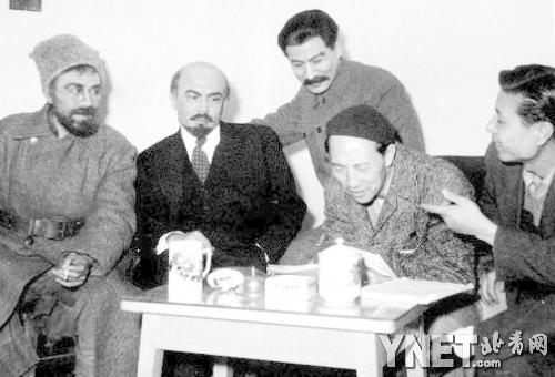 欧阳山尊(右二)与《带枪的人》主创人员在讨论