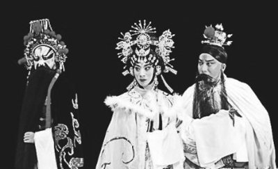 急风式的入场“闯宫”突显的是曹丕当断则断的机谋;《洛神赋》寄心曲,《七步吟》抗命运,烘托的是曹植诗章的风流与政治上的失意。最关键的是,甄宓在此剧中人神合一。她风姿绰约,诗情洋溢,如同天神般明丽照人,流光溢彩;她情感真挚,内心丰满,又拥有一个平凡女人的温柔情愫:她甘冒风雪为曹植送行;她体味意中人的《洛神赋》,失意怅惘;她纠结了两兄弟对于文章、美人、王权的争夺与情感冲突,她受命于曹操,担当着无言的和解使命,她在情感与责任中谨守,她对曹植的爱褪尽了人神之恋的飘缈,她对曹丕的敬谨守了王妃的礼数,她在爱与敬重中徘徊,在精神漾溢与礼法约束中挣扎,正是这种种真实的情感还原了一个人,一个生动的女人。