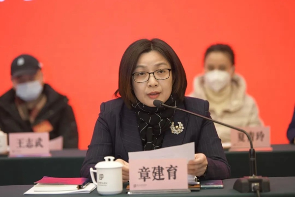 武汉市文联党组书记、副主席章建育代表市文联党组向大会的召开表示热烈祝贺。章建育表示,面对新形势新任务新要求,希望武汉戏剧家协会胸怀国之大者,始终高举习近平新时代中国特色社会主义思想伟大旗帜,全面贯彻落实习近平总书记关于文艺工作重要论述精神,牢牢把准戏剧工作的奋进方向,始终坚持以人民为中心的创作导向,引导戏剧工作者把人民放在心中最高位置,矢志不渝演绎生生不息的人民史诗;始终坚持把“做人的工作”和“推动文艺创作”相贯通,引导戏剧工作者把为人、做事、从艺统一起来,追求德艺双馨、引领社会风尚;始终坚持党领导的文艺发展道路,切实履行团结引导、联络协调、服务管理、自律维权职能,把戏剧工作者凝聚在党的周围,为建设文化繁荣的新时代英雄城市做出戏剧界更大贡献。