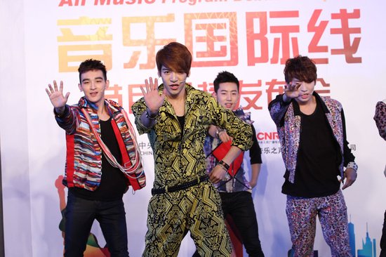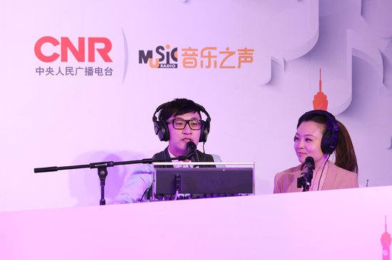 这场由中央人民广播电台主办的发布会,由音乐之声频率当家主持人小强用中英双语主持。现场还搭建了模拟直播间,音乐之声主持人文超和赵宇用中英双语模拟“音乐国际线”节目的直播,穿针引线,边介绍音乐边引出潮流女王尚雯婕用法语演唱《夜之缪斯》。尚雯婕的唱腔空灵飘渺,瞬间把嘉宾从桑巴舞的激情中带入梦境般的幸福与安宁。主持人几句模拟直播串场词过渡后又推出由中韩歌手组成的偶像男团TimeZ上台演唱《偶像万万岁》、表演《江南STYLE》,明朗的旋律和浓郁的青春气息顿时又充满整个发布会现场。主持人模拟直播和当红艺人的超强合作将现场推向一波又一波的音乐国际潮流线。