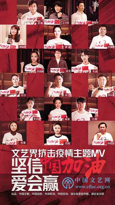 文艺界抗击疫情主题MV《坚信爱会赢》是由中国文联、中国视协、中国影协、中国音协和湖北省委宣传部、湖北省文联共同出品,MV歌曲由梁芒作词、舒楠作曲,王力宏、田桐、成龙、李光洁、肖战、吴京、沈腾、宋佳、杨培安、张蕾、陈建斌、林永健、佟丽娅、海霞、黄晓明、舒楠、雷佳、谭维维演唱,于2月2日首发以来,社会各界争相传唱,引起强烈反响。