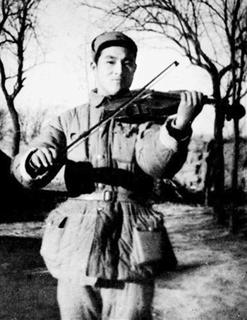 1948年,吕其明在华东军区为战士们演奏音乐