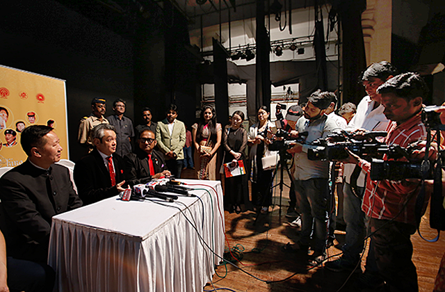 音乐会结束印度十家媒体现场采访,中国驻孟买总领事郑曦原、艺术团团长赵塔里木回答记者提问。