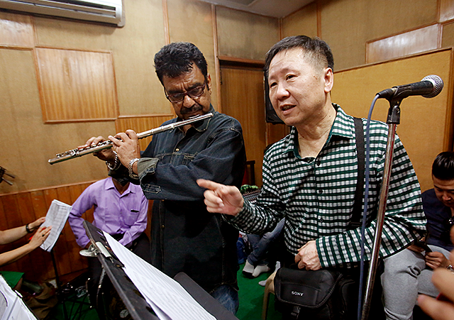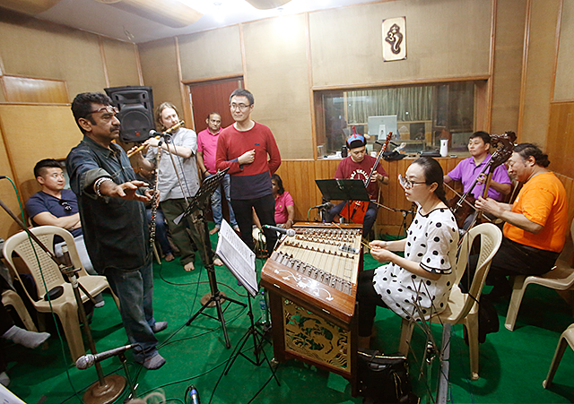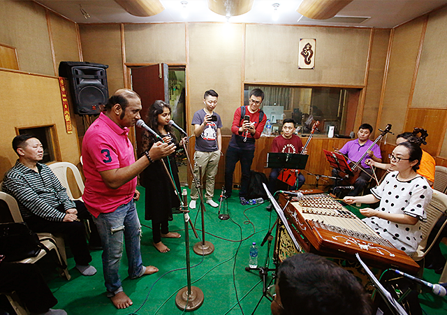 3月9日到达印度第二天清早艺术家们乘车来到一间不大的录音棚开始了紧张排练。