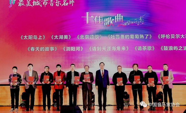 中国文联党组成员、副主席、书记处书记李前光为入选“歌声唱响中国”——最美城市音乐名片十佳歌曲获奖代表颁奖