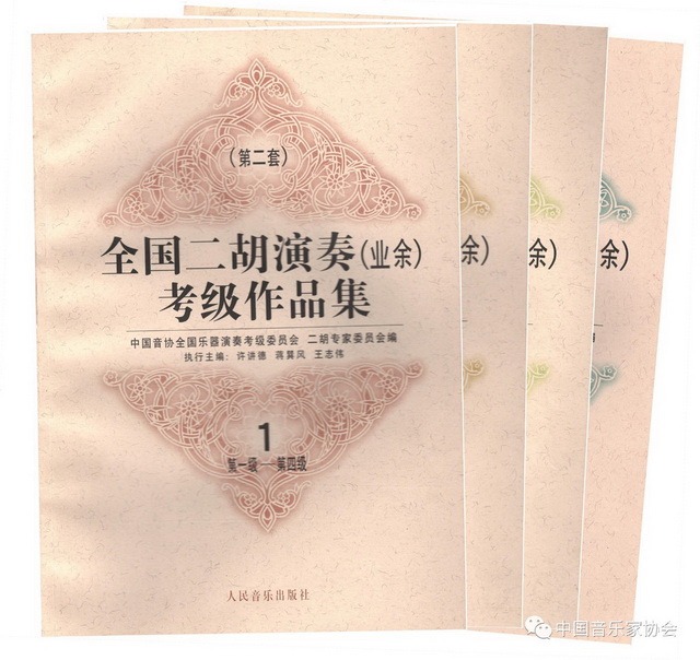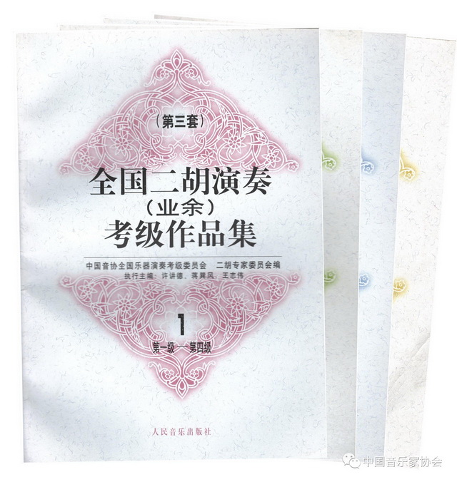 《全国二胡演奏(业余)考级作品集》第一套、第二套、第三套及第四套,均可在考级中使用。考生既可选用某一套作品集的某一个级别应试,也可以在这四套作品集同一级别的曲目中交叉选用应试。