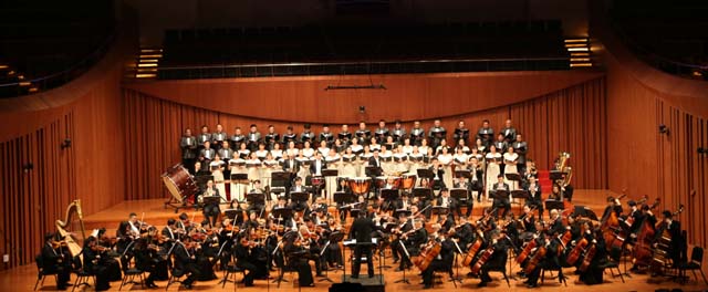 音乐会由著名指挥家常畅执棒,江苏省演艺集团交响乐团担任伴奏。一曲斗志昂扬、激情澎湃的混声合唱《七律—人民解放军占领南京》首先唱响,这首由毛泽东作词、沈亚威谱曲的作品充分展示了当时人民解放军解放全中国的必胜信念,格调雄伟,气势磅礴。