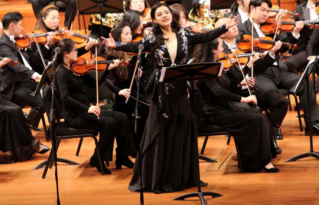 青年歌唱家张其萍带来沈亚威所创作的八场大型歌舞选段歌曲《东海前哨之歌》《雾茫茫,雨霏霏》,带领现场听众一同品味经典之声,追忆往昔岁月。