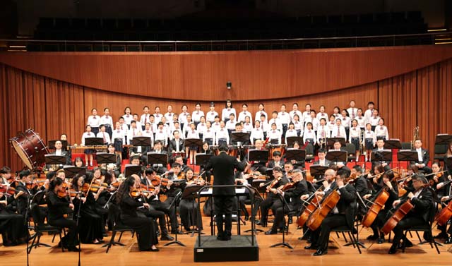 88岁高龄的著名指挥家石中光和著名女中音歌唱家孙振华、江苏省演艺集团爱之旅合唱团共同演绎了歌曲《钟山颂》《祖国无限好》,为音乐会画上了圆满句号。
