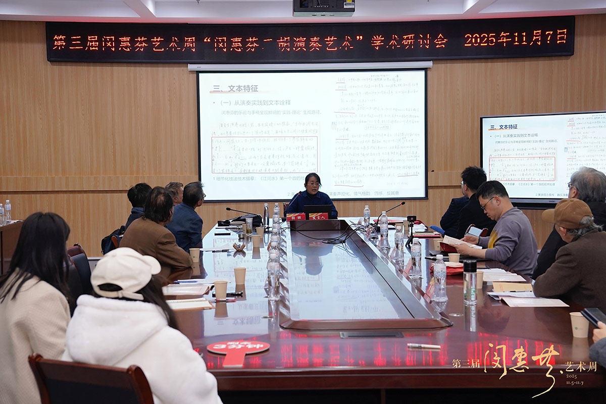 研讨会由袁昊昱主持,李祖胜评议。吴玉霞从艺术家的精神风骨层面出发,从胡琴演奏家的执着追求、文化传承者的自觉担当、生命强者的不屈意志等多维角度赞颂了闵惠芬的人格光辉与艺术贡献,用尽一生诠释了“蕙质兰心留芬芳”这七个字的深刻内涵;刘承华以“闵惠芬二胡艺术成就的能量构成”为观照基点,从演奏家天赋、支援系统、生涯的生长点、生命体验四个方面,论述了闵惠芬艺术成就如此之高的内在机制;杨光熊将闵惠芬的艺术生涯置于二胡百年发展的宏大叙事中予以审视,认为应该从中汲取有关创作、演奏、教学的经验,为“如何推动二胡艺术在当代走向持续性发展”这一重要命题提供了思考空间;梁云江在对闵惠芬先生的追忆中,通过事业与生活的点滴缩影归纳出其“德高艺精、平易近人”的人格魅力与艺术境界。